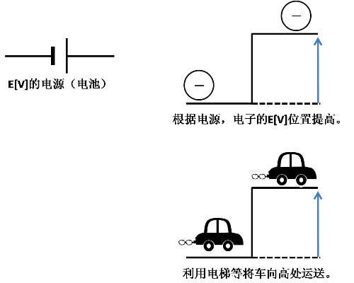 電源是連接兩端E[V]電位差的設(shè)備。這與轎廂使用電梯自動(dòng)移動(dòng)到高度為 t[m] 的位置的原因相同。