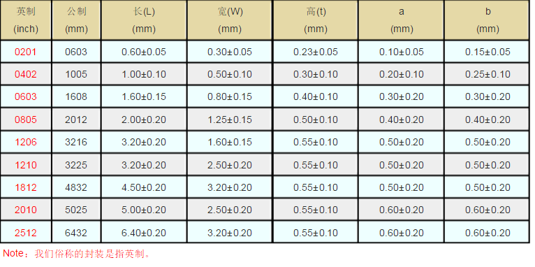 尺寸:0201~2512