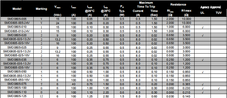 二、SMD0805系列:此為空間極為有限且需要自恢復(fù)保護(hù)的應(yīng)用提供表面貼裝過電流保護(hù)。功能與特色: 符合RoHS標(biāo)準(zhǔn)且不含鉛和鹵素對故障電流作出快速響應(yīng)緊湊型設(shè)計(jì)節(jié)省了電路板空間,具有低電阻,小尺寸與高溫焊料兼容的優(yōu)點(diǎn)。尺寸為2.0*1.2MM。SMD封裝。