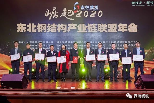 在盛典現(xiàn)場,界海鋼鐵公司總經(jīng)理郭德海先生作為嘉賓與專家就鋼結(jié)構(gòu)未來發(fā)展趨勢等問題進(jìn)行了互動溝通,并表示將在以后的聯(lián)盟工作中,起到團(tuán)結(jié)互助、合作共贏的模范帶頭作用,讓鋼結(jié)構(gòu)產(chǎn)業(yè)鏈聯(lián)盟這一組織傳播的更廣,發(fā)揮更大的作用。 東北鋼結(jié)構(gòu)產(chǎn)業(yè)鏈聯(lián)盟成立于2017年,是由遼寧、吉林、黑龍江及內(nèi)蒙地區(qū)鋼結(jié)構(gòu)生產(chǎn)及配套企業(yè)自愿組成的一個非盈利性社會組織。聯(lián)盟企業(yè)間資源互通、信息共享,優(yōu)勢互補(bǔ),打造合作新平臺,通過聯(lián)盟合作提升產(chǎn)品質(zhì)量和服務(wù)水平,增強(qiáng)行業(yè)區(qū)域競爭力、企業(yè)品牌影響力、實現(xiàn)聯(lián)盟企業(yè)共贏。