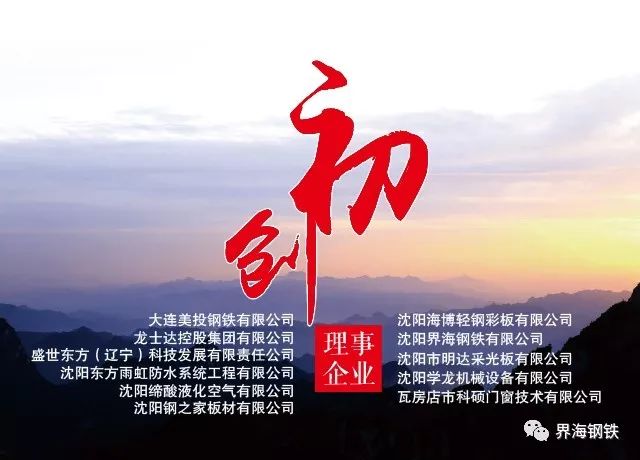 讓我們同心所向,真誠合作,共創(chuàng)聯(lián)盟美好的明天 ------------------------------------ 第四屆東北鋼結(jié)構(gòu)產(chǎn)業(yè)鏈聯(lián)盟年會 主辦單位: 大連美投鋼鐵有限公司 龍士達(dá)控股集團(tuán)有限公司 盛世東方(遼寧)科技發(fā)展有限責(zé)任公司 沈陽東方雨虹防水系統(tǒng)工程有限公司 沈陽締酸液化空氣有限公司 沈陽鋼之家板材有限公司 沈陽海博輕鋼彩板有限公司 沈陽界海鋼鐵有限公司 沈陽市明達(dá)采光板有限公司 沈陽學(xué)龍機(jī)械設(shè)備有限公司 瓦房店市科碩門窗技術(shù)有限公司 冠名贊助: 吉林建龍鋼鐵有限責(zé)任公司 贊助單位: 重慶東冶集團(tuán)一遼寧東冶裝配式建筑材料有限公司 遼寧麥琪新材料集團(tuán)有限公司 沈陽鋼之家板材有限公司 大連美投鋼鐵有限公司 盛世東方(遼寧)科技發(fā)展有限責(zé)任公司 沈陽學(xué)龍機(jī)械設(shè)備有限公司 沈陽市明達(dá)采光板有限公司 沈陽界海鋼鐵有限公司 沈陽鑫海灣鋼鐵有限公司 糧源酒莊 沈陽鑫雙喜門業(yè) 華祥苑茗茶(興華店) 協(xié)辦單位: 遼寧省河北商會 沈陽市河北商會 沈陽市民營企業(yè)家愛心慈善會 遼寧省建筑金屬結(jié)構(gòu)協(xié)會鋼結(jié)構(gòu)分會